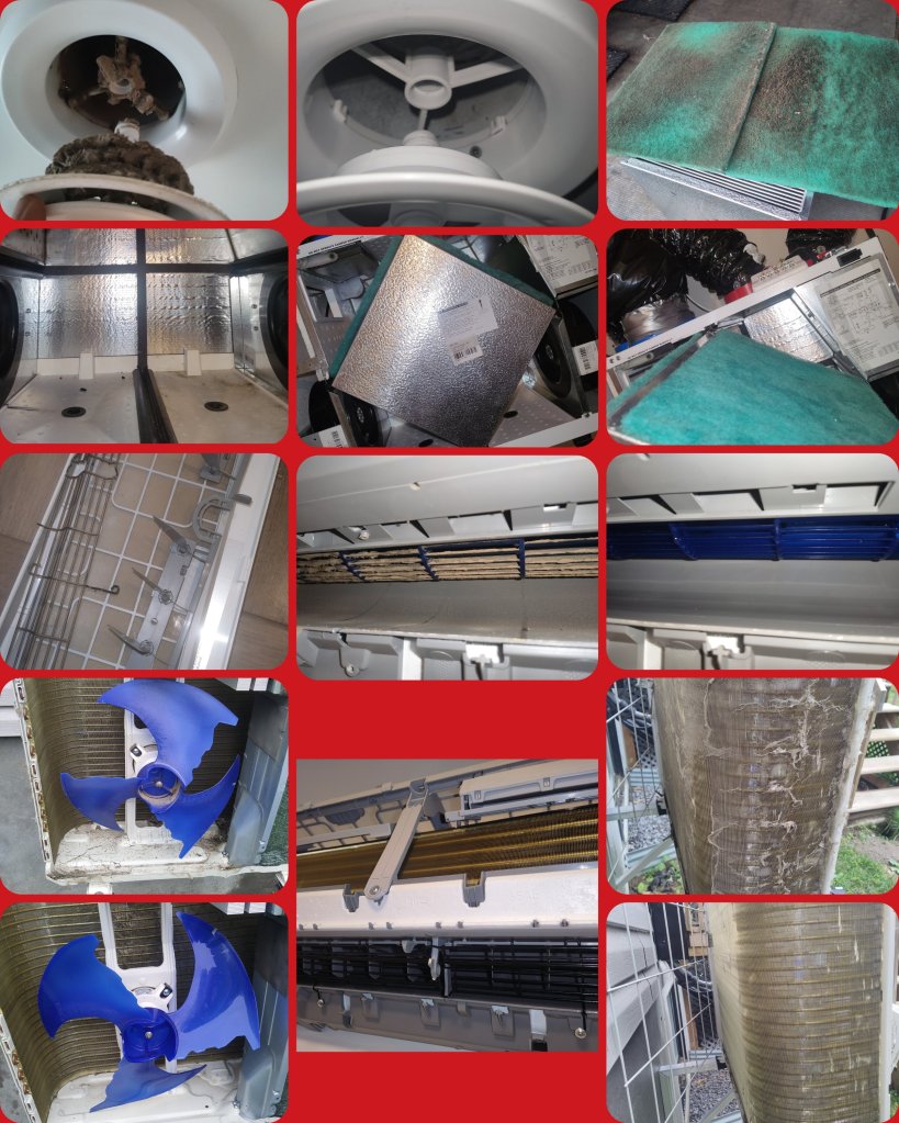 Touts les plastiques doivent être enlevés et la panne pour le drain doit être enlevée pour bien nettoyer la roue et l’intérieur sinon ce n’est pas un nettoyage complet . ( Pour les thermopompe, parfois la panne n’est pas démontable et se nettoie en place) C’est minimum 1h30 chez le client pour un technicien vraiment habitué et pas en bas… Celle-ci le drain était blocké et très long alors pour le déblocage ça prend un compresseur pour bien faire le travail.